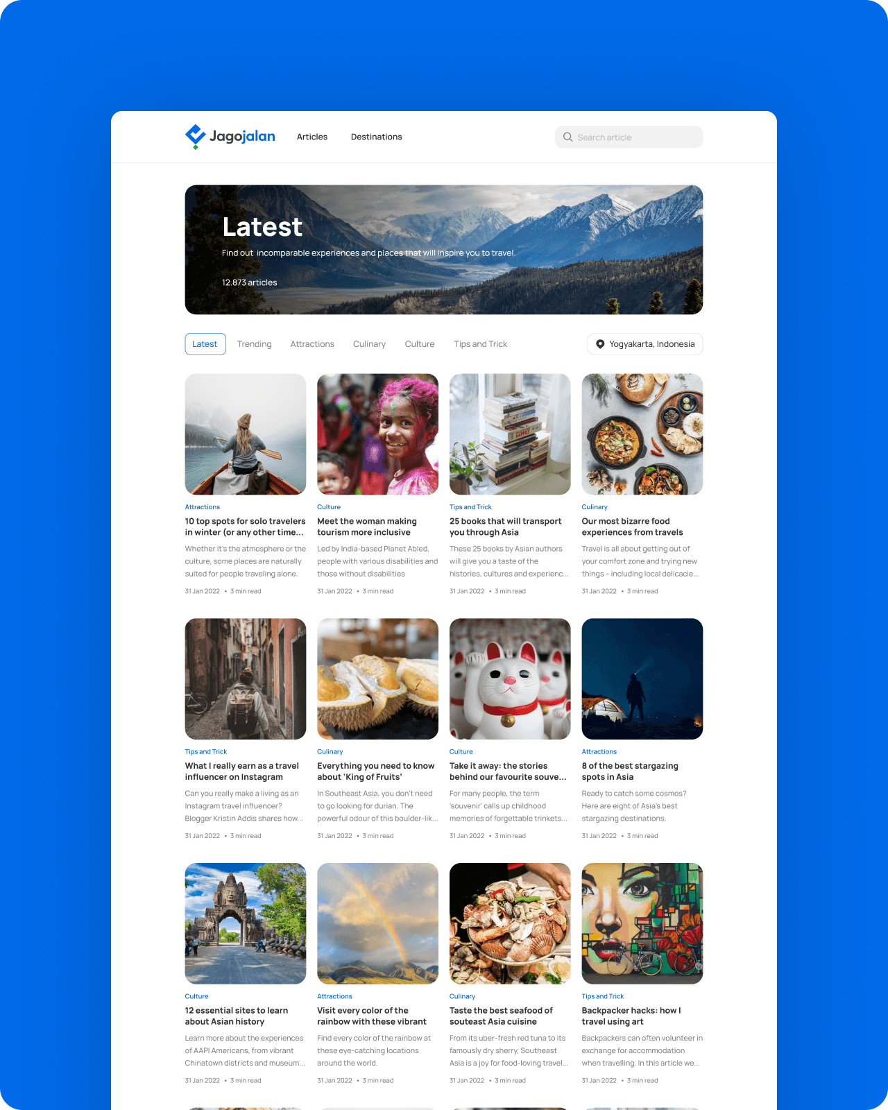 Jagojalan is a travel inspiration website providing trusted content from experts who explore something new in your neighborhood or embarking on an overseas adventure. Jagojalan guides you with travel tips and helps you find unique experiences to inspire more moments of joy.